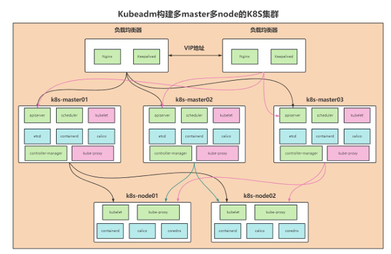 用户访问的时候要访问vip地址、然后vip地址通过负载均衡转发到master、再到对应的pod